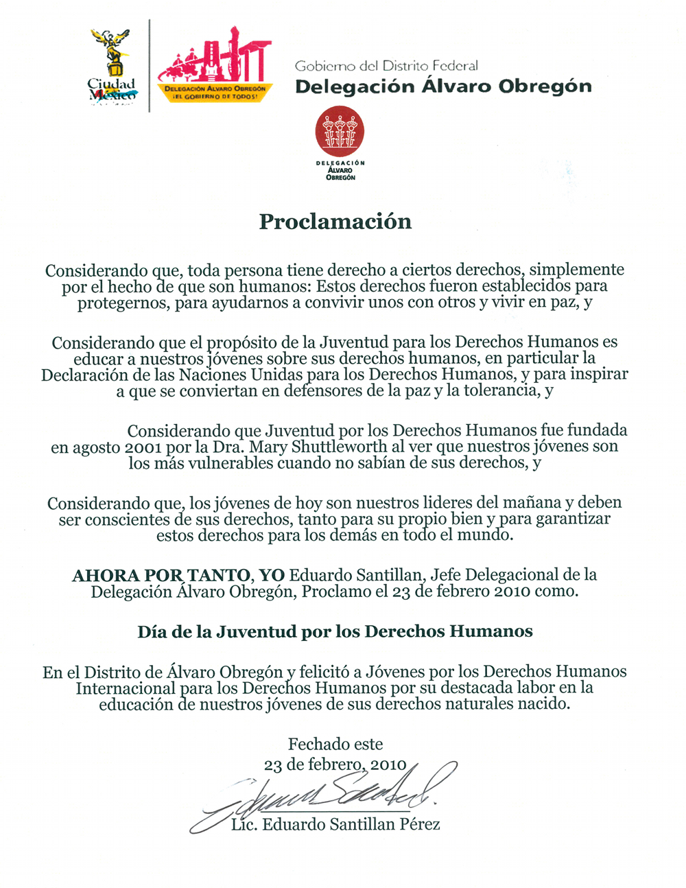 2010年 ― メキシコ、ユース・フォー・ヒューマンライツの日宣言